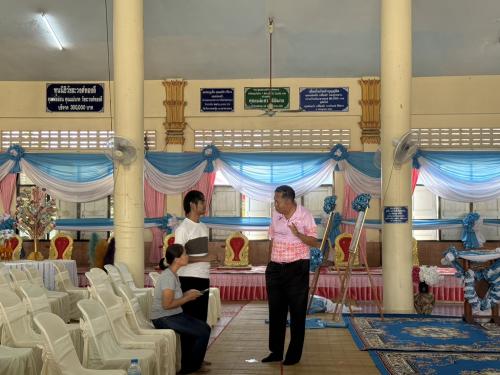 นายธนา พิพิธกุล พัฒนาการอำเภอพิมาย พร้อมด้วยนางสาวศศินา ประโพทัง นักวิชาการพัฒนาชุมชนปฏิบัติการ ลงพื้นที่เตรียมสถานที่และเตรียมความพร้อมการจัดพิธีอัญเชิญเงินขวัญถุงพระราชทานกองทุนแม่ของแผ่นดินบ้านท่าหลวง หมู่ที่ 2