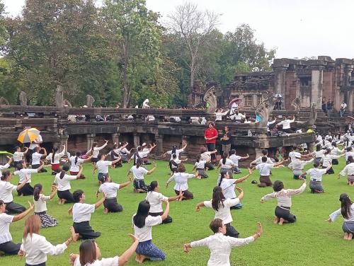พช.พิมาย ดำเนินการซักซ้อมการรำบวงสรวงพระเจ้าชัยวรมันที่ 7 ก่อนพิธีเปิดงานเทศกาลเที่ยวพิมาย ประจำปี 2568