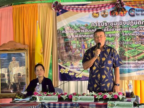 นายจิรเดช พงษ์ประสิทธิ์ นายอำเภอโนนสูง เป็นประธานในพิธีเปิดโครงการ โดยมี นางกนกรัชต์ วงษ์กาฬสินธุ์ พัฒนาการจังหวัดนครราชสีมา ให้เกียรติพบปะให้ความรู้แก่ผู้เข้าร่วมโครงการ เพื่อเน้นย้ำถึงเป้าหมายการสร้างเครือข่ายศูนย์เรียนรู้ฯ ให้มีศักยภาพและเกิดผลสัมฤทธิ์ที่เป็นรูปธรรมโดยมีนำคณะผู้บริหาร เจ้าหน้าที่ และพี่น้องเครือข่ายฯ ร่วมกันทำกิจกรรม "ปลูกต้นไม้" และ "ปลูกผัก" เพื่อเป็นสัญลักษณ์ของการเริ่มต้นสร้างความมั่นคงทางอาหารและเพิ่มพื้นที่สีเขียวอย่างยั่งยืนในพื้นที่ การจัดงานครั้งนี้แสดงให้เห็นถึงความพร้อมของศูนย์เรียนรู้การพัฒนาคุณภาพชีวิตตามหลักทฤษฎีใหม่ ประยุกต์สู่ “โคก หนอง นา” แปลงนางธัญญนันท์ สำเร็จงานในการเป็นศูนย์กลางการเรียนรู้ที่เข้มแข็ง พร้อมส่งต่อแนวคิด Change for Good เพื่อสร้างชุมชนที่อยู่ดีมีสุขอย่างยั่งยืน